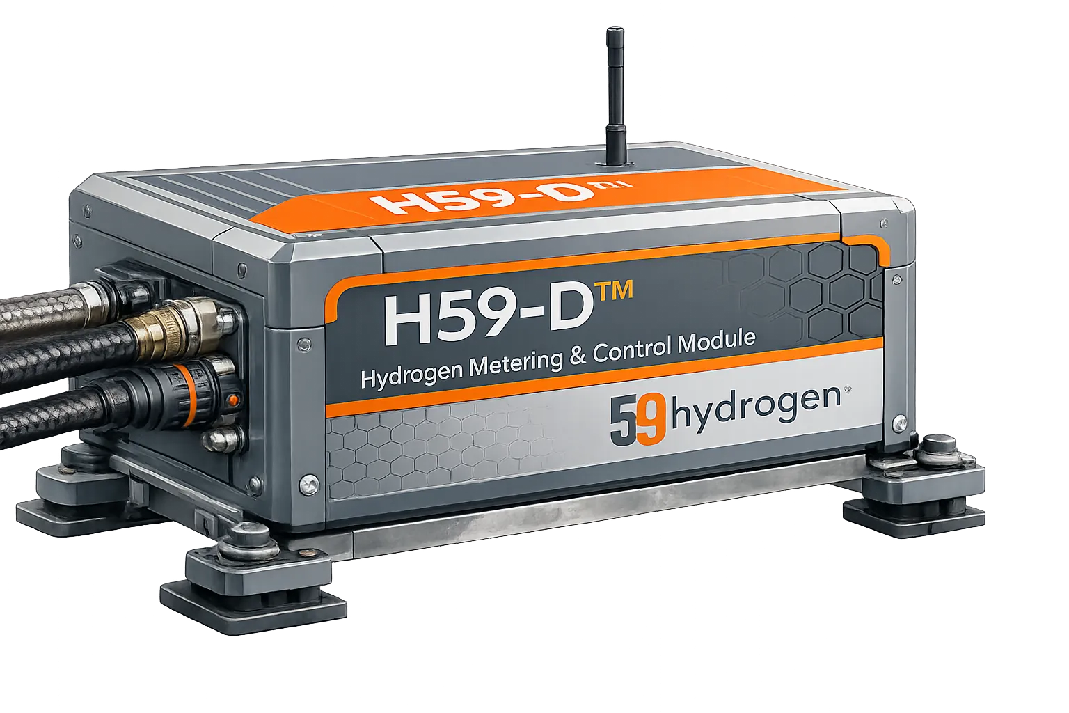 The H59-D Autonomous™ blending module injects hydrogen into the diesel combustion process using precision controls, without altering engine design or performance.